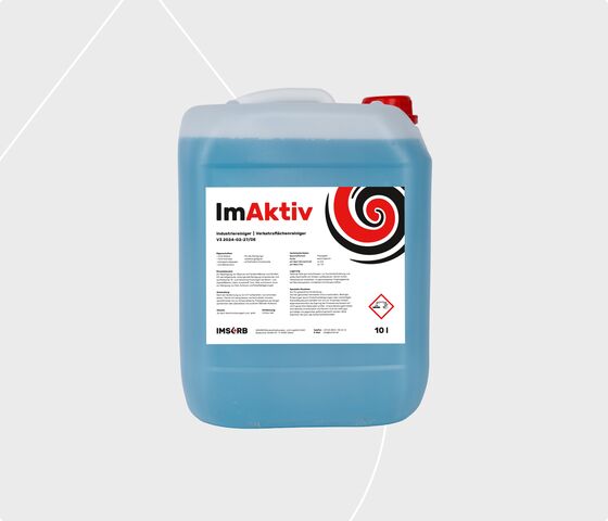 ImAktiv ist ein wirkungsvoller Industrie- und Gebäudereiniger für die tiefgehende Reinigung mineralischer und synthetischer Öl- und Fettverschmutzungen auf Beton- und Asphaltflächen, Stein, Kunststoff, Holz, Glas und Gummi. Sehr effizient auch an und vor der Zapfsäule an Tankstellen, in KFZ-Betrieben, auf Bauhöfen und bei Speditionen. Auch geeignet für die Tank- und Schiffsreinigung.